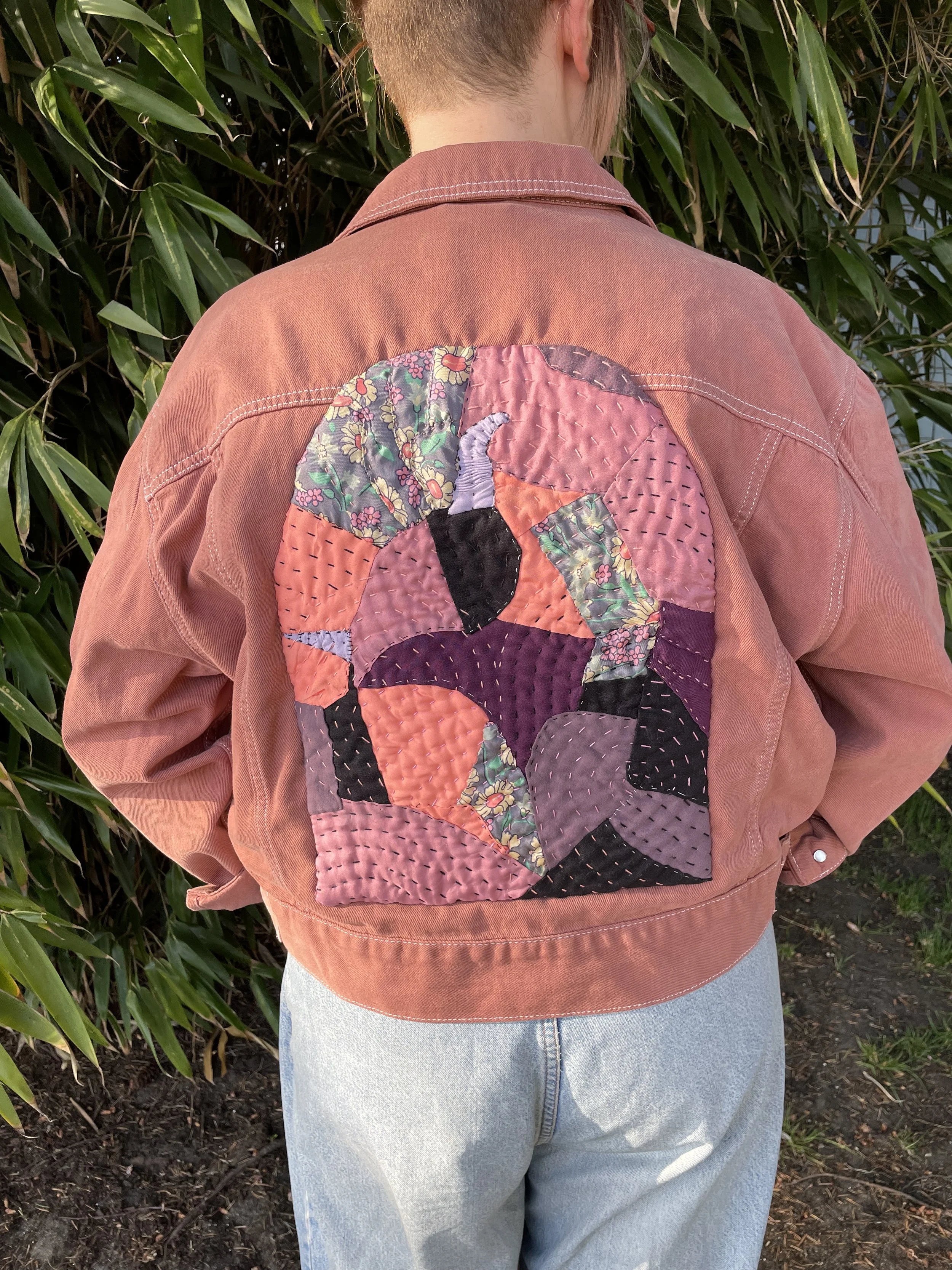 Vintage silk bowties, with original loose threads, on thrifted cotton and silks